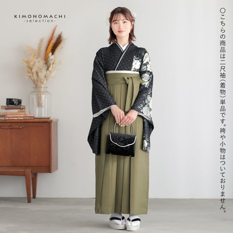 卒業式、謝恩会に 袴に合わせて華やかに 二尺袖着物 二尺袖着物 単品 半身変わり「スチールブラック 花菱、ローズブーケ」Fサイズ お仕立て上がり 短丈 ショート丈 レディース 洗える着物 二尺袖 着物 袴に合わせて 卒業式 謝恩会【メール便不可】