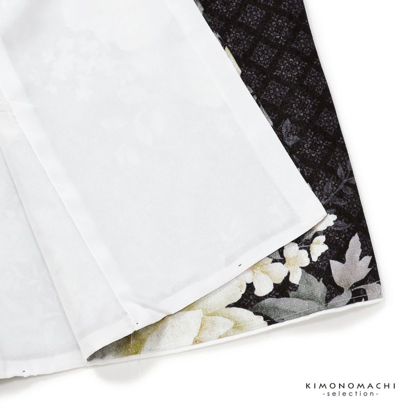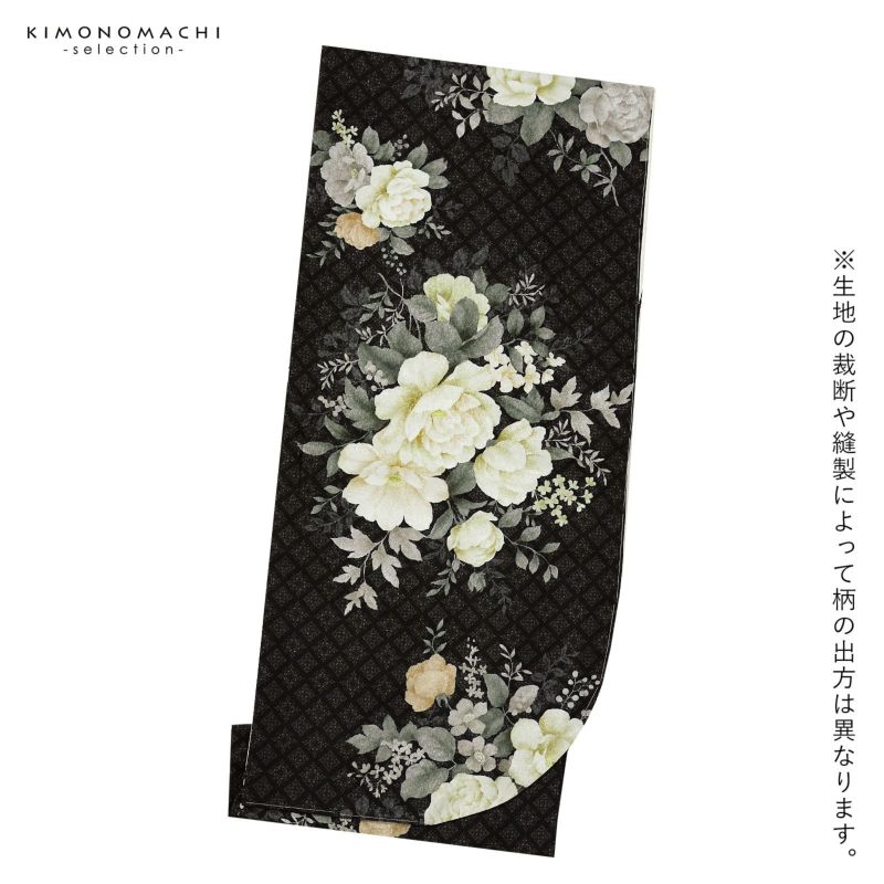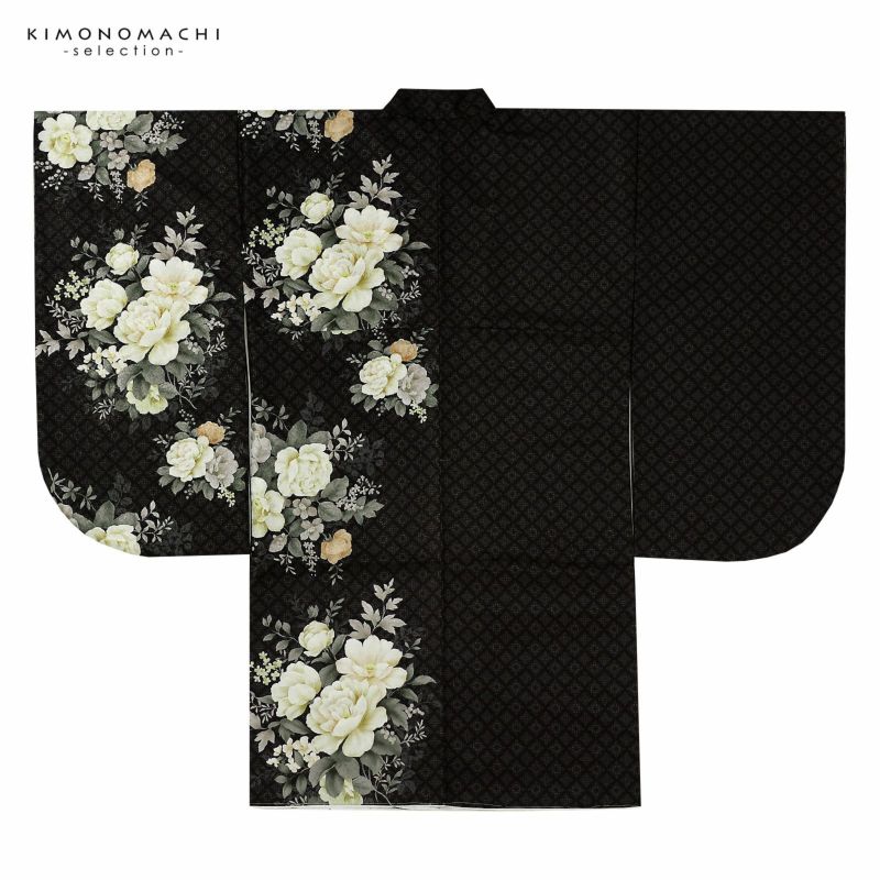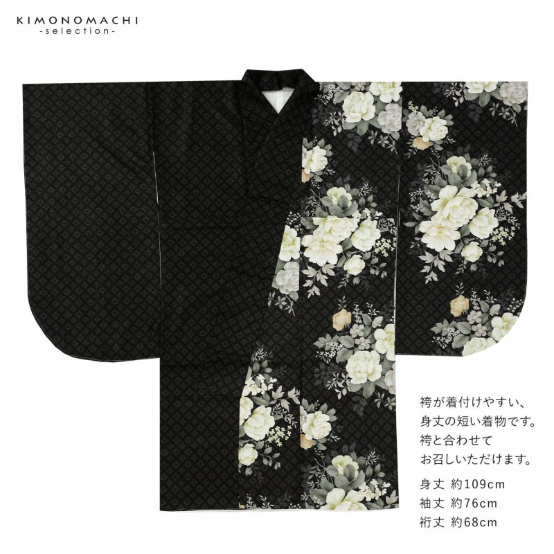 3. 二尺袖着物 単品 半身変わり「スチールブラック 花菱、ローズブーケ」Fサイズ お仕立て上がり 短丈 ショート丈 レディース 洗える着物 二尺袖 着物 袴に合わせて 卒業式 謝恩会【メール便不可】