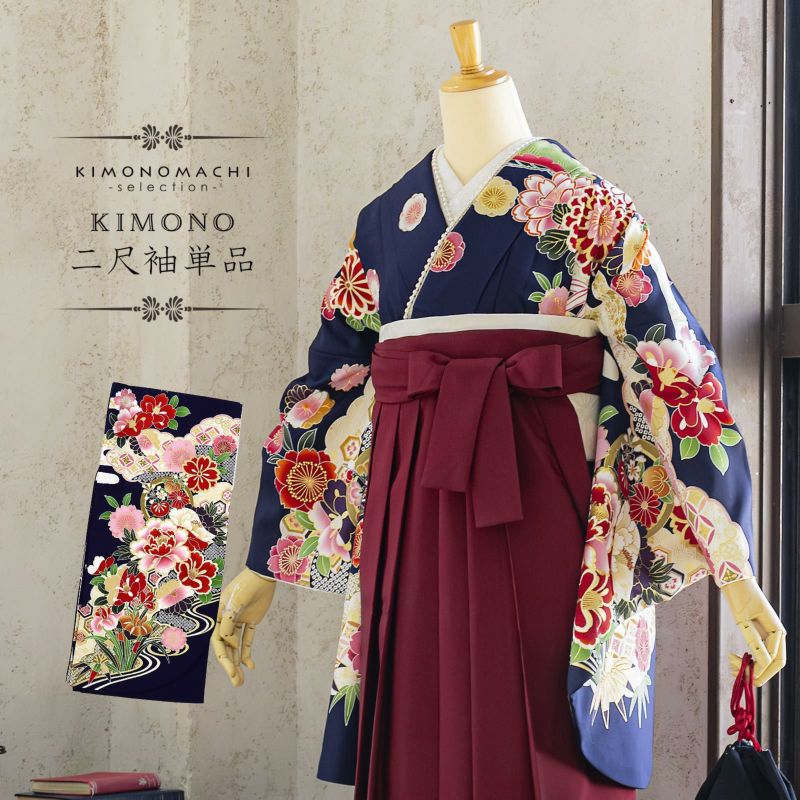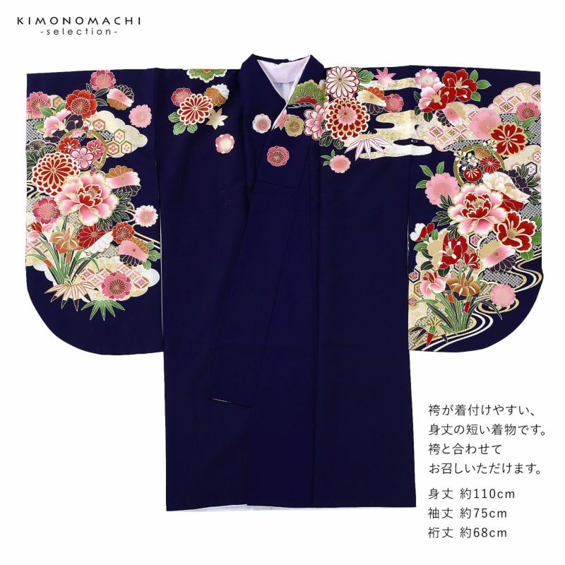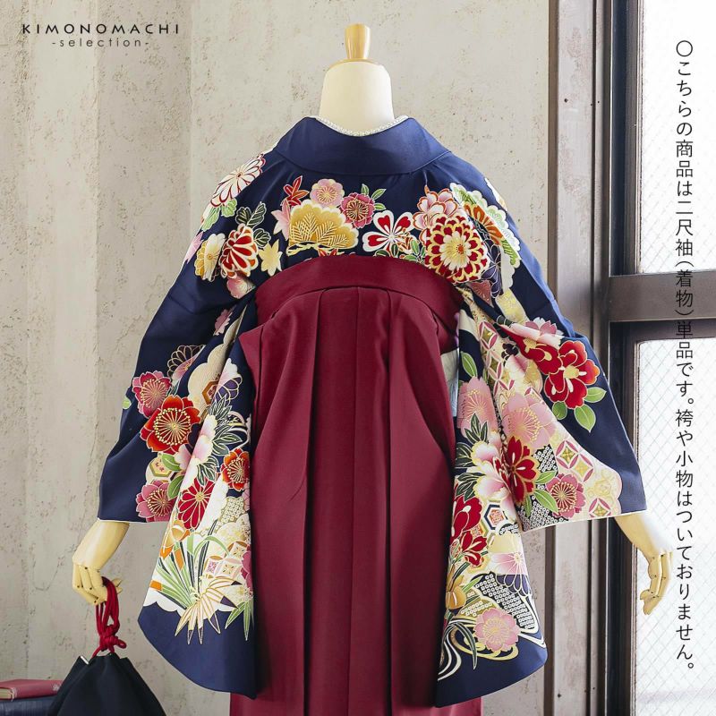 卒業式、謝恩会に 袴に合わせて華やかに 二尺袖着物 二尺袖着物 単品「紫紺 雲に四季花」Fサイズ お仕立て上がり 短丈 ショート丈 レディース 洗える着物 二尺袖 着物 袴に合わせて 卒業式 謝恩会【メール便不可】