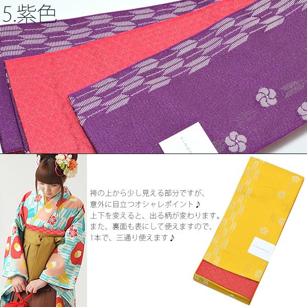 他の画像を見る 卒業式、謝恩会の袴に 袴下帯 (卒業式応援75%SALE 2/19迄)【Prices down2】リバーシブル袴下帯「矢羽根と梅 赤、黄、ピンク、青緑、紫の全5色」リバーシブル 袴帯 細帯 半幅帯 卒業式、謝恩会の袴に 【メール便不可】ss2509hkm35 通常販売価格 ¥ 2,805 のところ きもの町価格 ¥ 1,683 税込 販売期間 2026/02/05 18:00 〜 2026/02/19 17:59 カートに入れる お気に入りに登録する