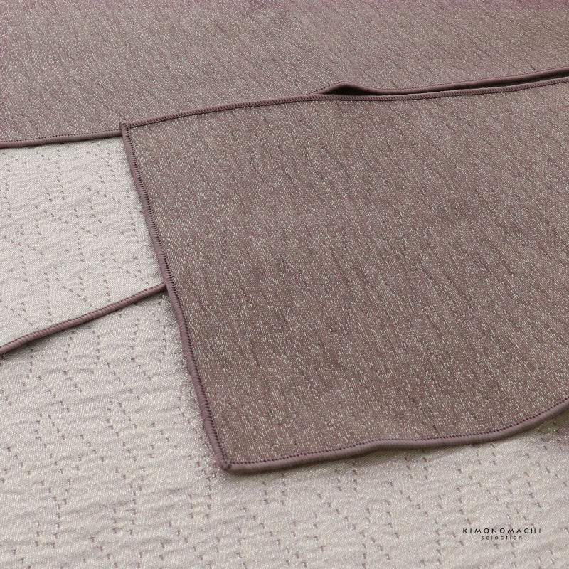 【色柄】シボのある灰みのくすみピンクの地にゴールドのラメ糸が織り込まれています。