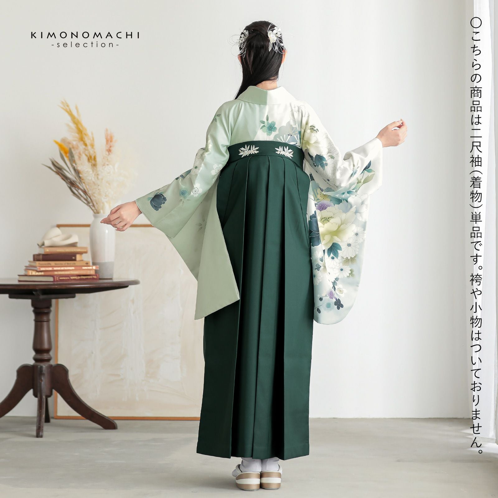 他の画像を見る 送料無料 (卒業式応援Point10倍 3/5迄)袴 セット 卒業式 女性 4点セット「二尺袖:クロムグリーン アラベスク、月花+袴:黒 無地+袴下帯:なみなみ オフホワイト×アイボリー+襦袢」S/M/L/LL サイズ 卒業式 女性 レディース お仕立て上がり 袴セット 二尺袖着物セット 着物 二尺着物 袴【メール便不可】 きもの町価格 ¥ 62,370 税込 在庫切れ 販売期間 2026/02/19 18:00 〜 2026/03/05 17:59 カートに入れる お気に入りに登録する