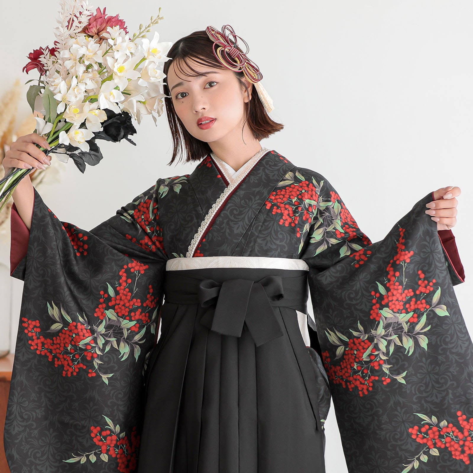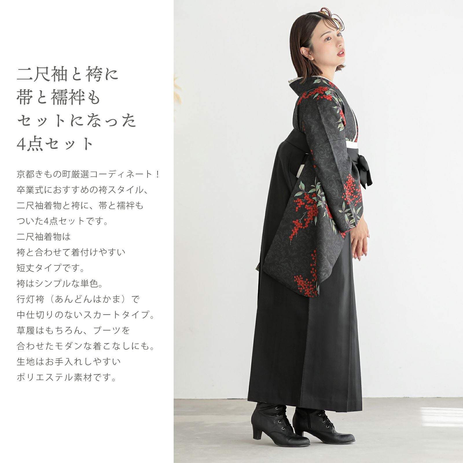 他の画像を見る 送料無料 卒業式に 二尺袖袴セット 卒業式 袴 レディース (卒業式応援75%SALE 3/5迄)袴 セット 卒業式 女性 4点セット「二尺袖:アラベスクに南天 黒色+袴:黒 無地+袴下帯:白 麻の葉+襦袢」S/M/L/LL サイズ 卒業式 女性 レディース お仕立て上がり 袴セット 二尺袖着物セット 着物 二尺着物 袴【メール便不可】 通常販売価格 ¥ 33,000 のところ きもの町価格 ¥ 28,600 税込 在庫切れ 販売期間 2026/02/19 18:00 〜 2026/03/05 17:59 カートに入れる お気に入りに登録する