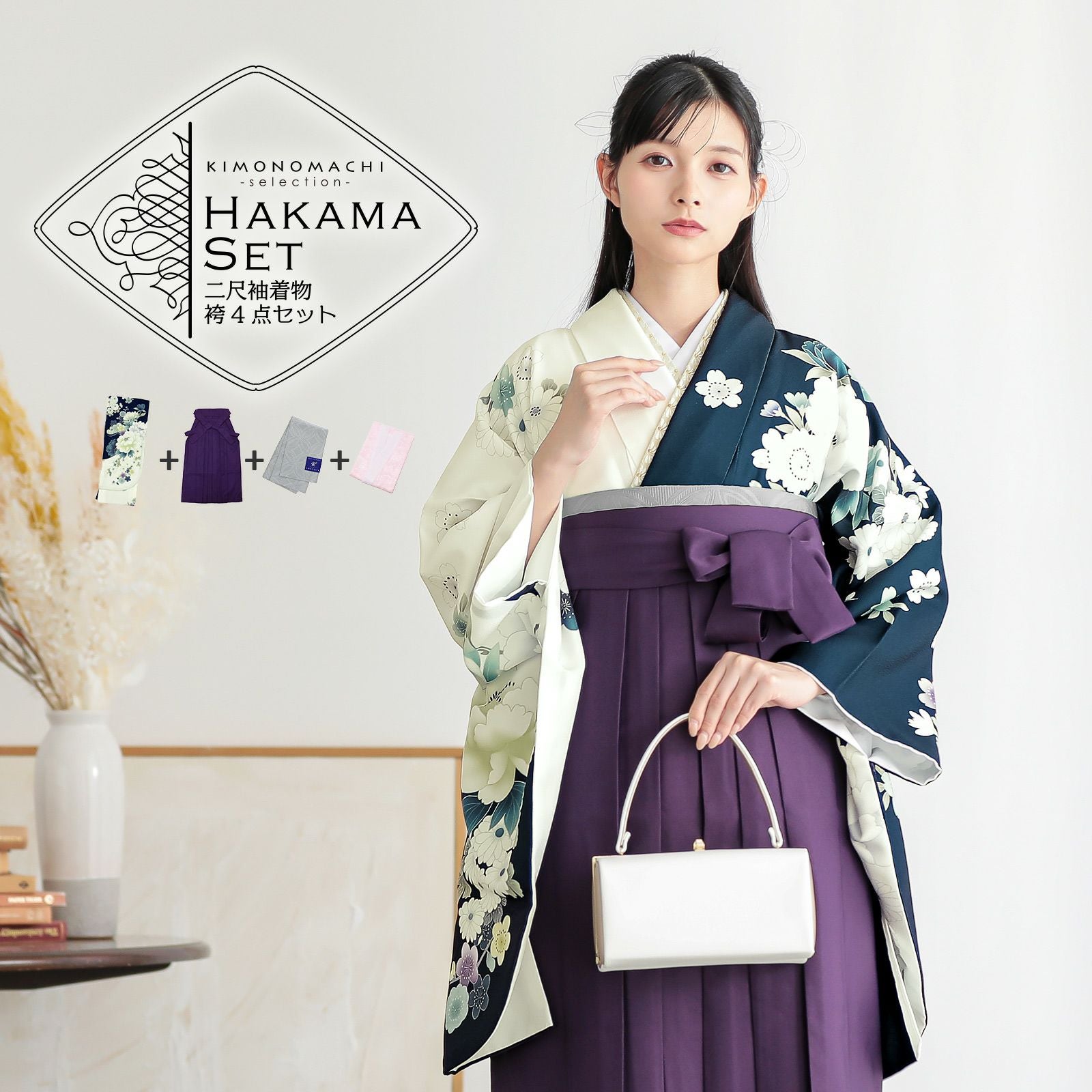 他の画像を見る 送料無料 袴 セット 卒業式 女性 4点セット「二尺袖:濃紺地、紺青 牡丹に菊+袴:オフホワイト 葡萄+袴下帯:白 麻の葉+襦袢」S/M/L/LL サイズ 卒業式 女性 レディース お仕立て上がり 袴セット 二尺袖着物セット 着物 二尺着物 袴【メール便不可】 きもの町価格 ¥ 62,700 税込 在庫切れ カートに入れる お気に入りに登録する