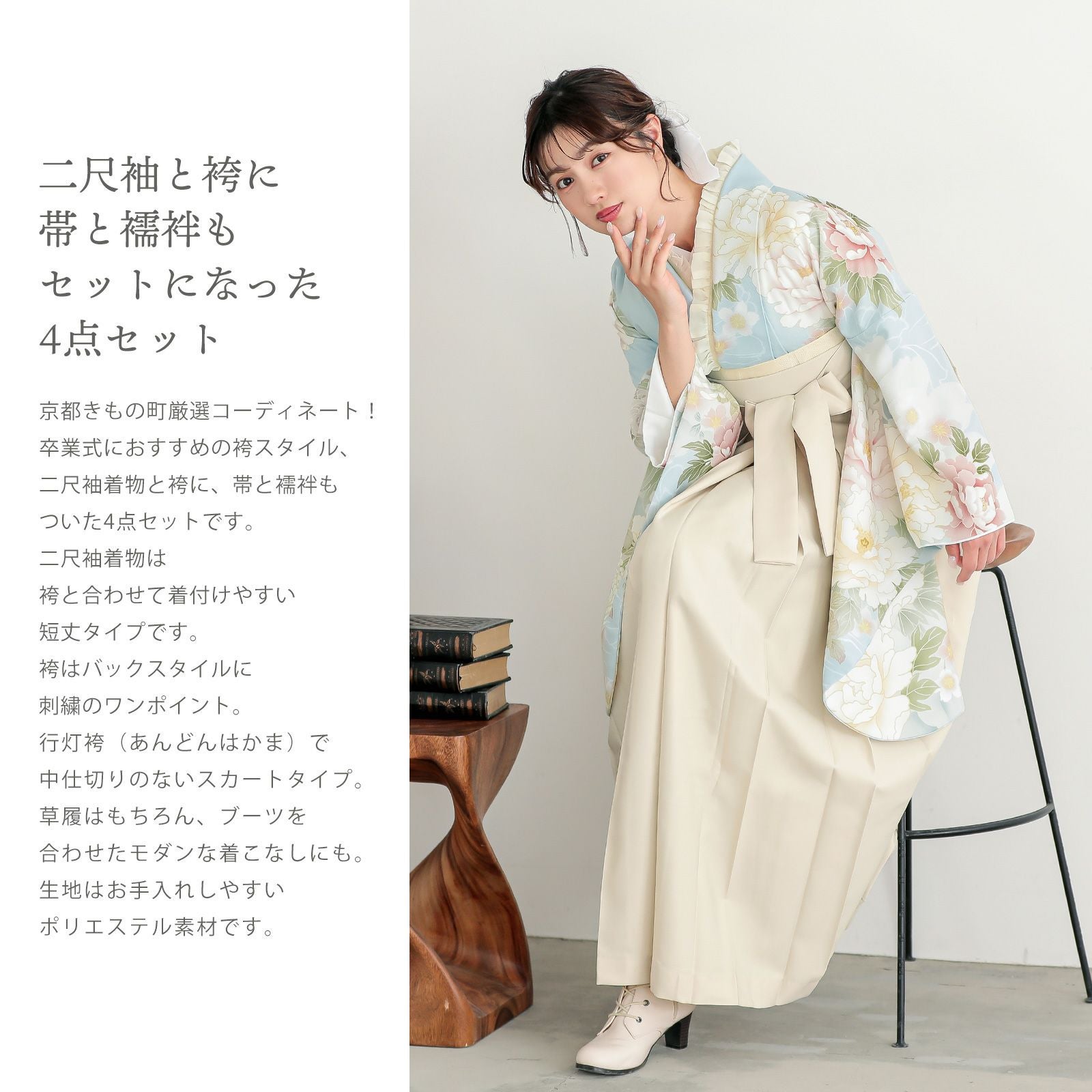 他の画像を見る 送料無料 袴 セット 卒業式 女性 4点セット「二尺袖:水色、白緑 牡丹に菊+袴:オフホワイト 葡萄+袴下帯:白 麻の葉+襦袢」S/M/L/LL サイズ 卒業式 女性 レディース お仕立て上がり 袴セット 二尺袖着物セット 着物 二尺着物 袴【メール便不可】 きもの町価格 ¥ 62,700 税込 在庫切れ カートに入れる お気に入りに登録する