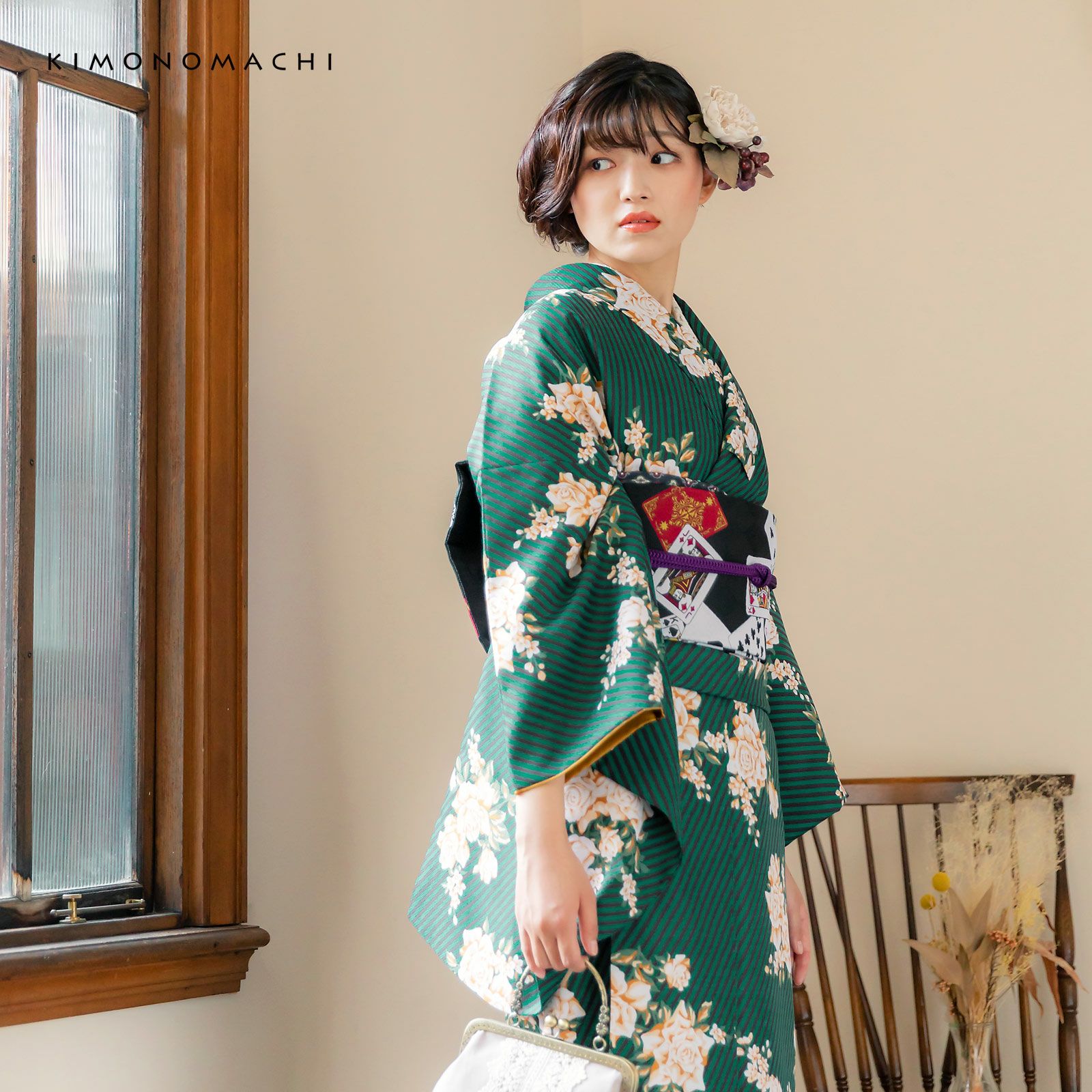 他の画像を見る 送料無料 KIMONOMACHI オリジナル! 個性派洗える二尺袖着物 レトロモダン 古典柄 アンティーク着物風 二尺袖着物 単品「ストライプブーケグリーン」KIMONOMACHIオリジナル お仕立て上がり レディース 洗える着物 二尺袖 着物 袴に合わせて 卒業式 謝恩会に 通常丈 長着 カジュアル着物【メール便不可】 きもの町価格 ¥ 22,000 税込 在庫切れ 詳細を見る お気に入りに登録する