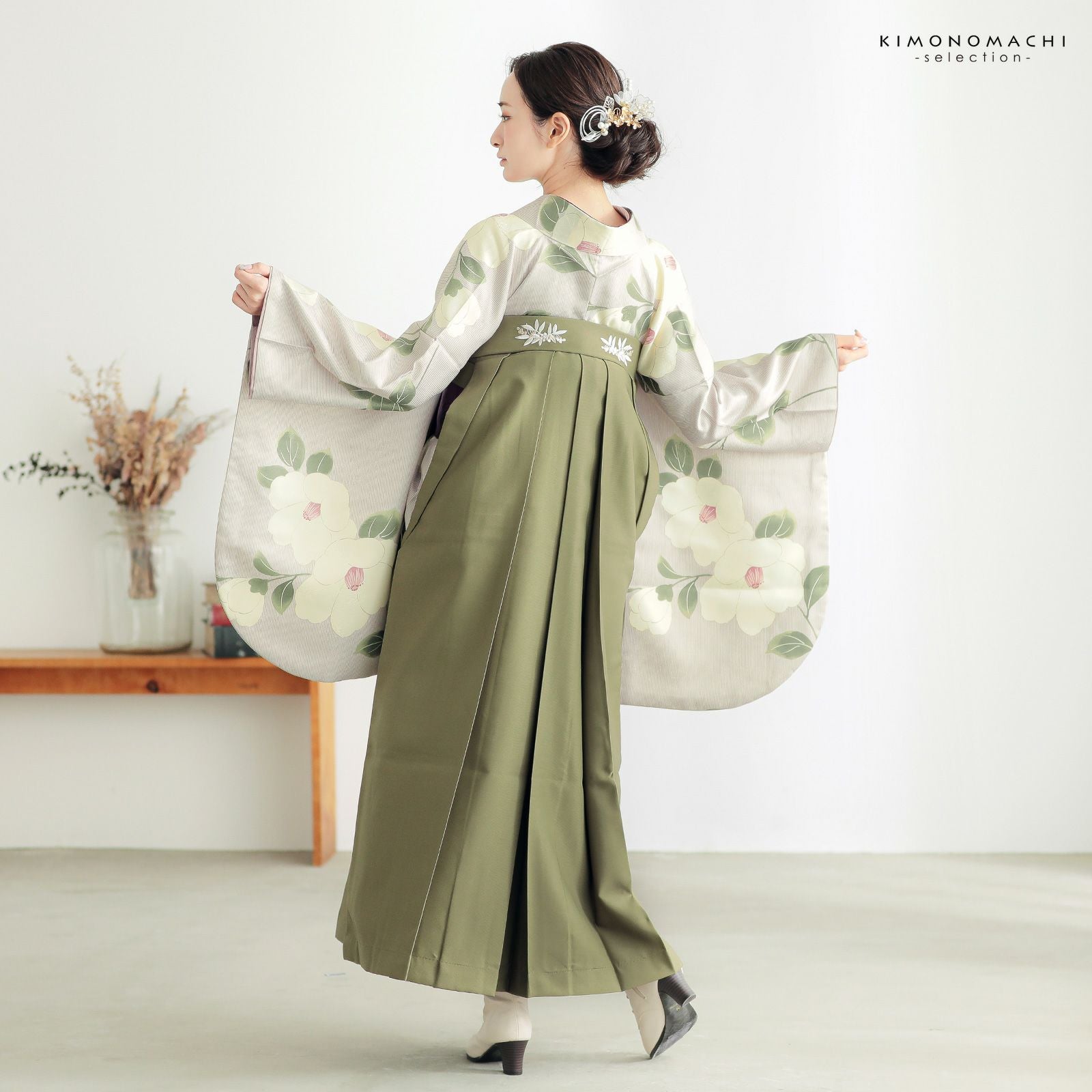 他の画像を見る 送料無料 卒業式に 二尺袖袴セット 卒業式 袴 レディース (卒業式応援75%SALE 3/5迄)袴 セット 卒業式 女性 4点セット「二尺袖:縞に椿 グレーベージュ+袴:オリーブ 南天+袴下帯:グレープ 麻の葉+襦袢」卒業式 女性 レディース お仕立て上がり 袴セット 二尺袖着物セット 着物 二尺着物 袴【メール便不可】 通常販売価格 ¥ 45,100 のところ きもの町価格 ¥ 37,400 税込 販売期間 2026/02/19 18:00 〜 2026/03/05 17:59 カートに入れる お気に入りに登録する