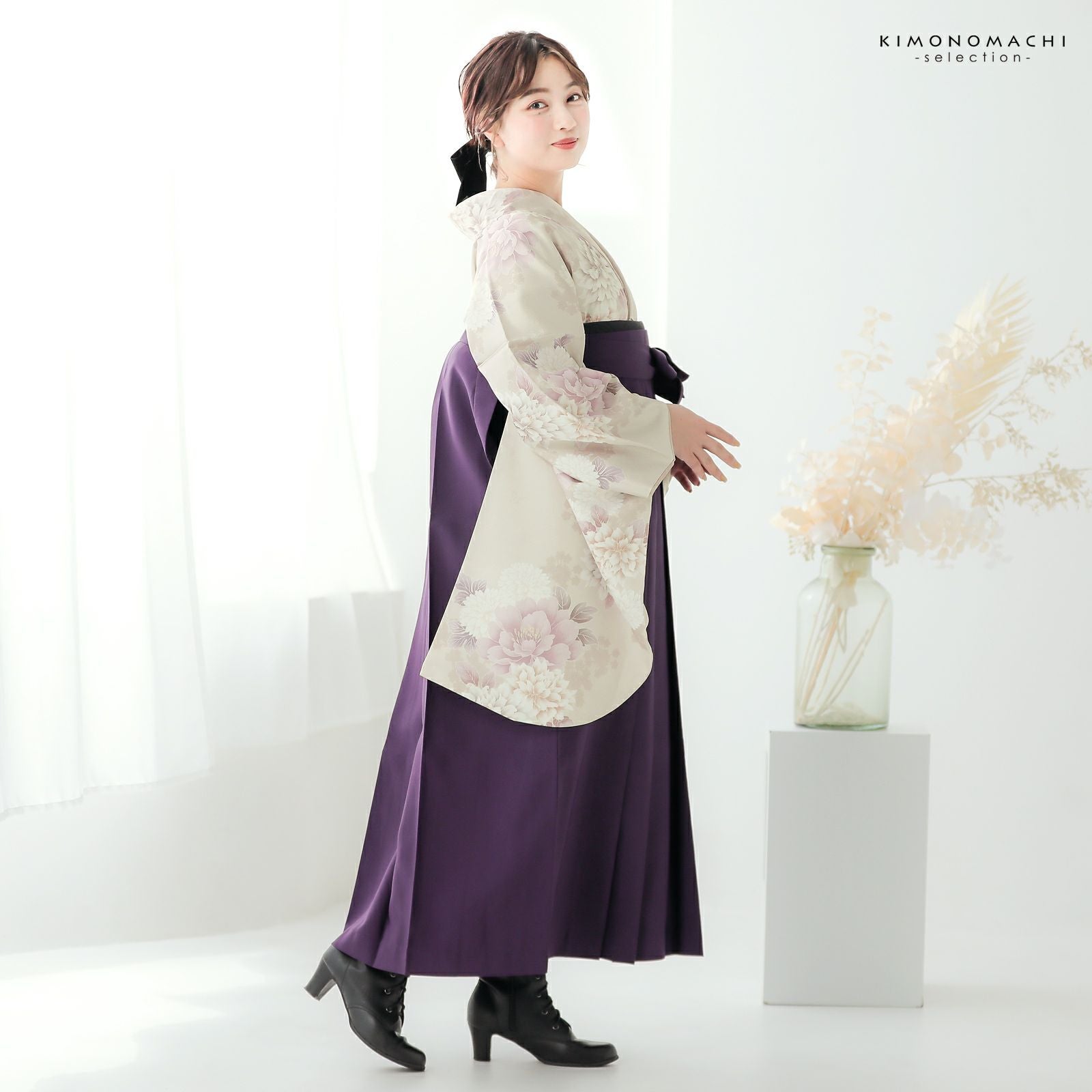他の画像を見る 送料無料 卒業式に 二尺袖袴セット 卒業式 袴 レディース (卒業式応援75%SALE 3/5迄)袴 セット 卒業式 女性 4点セット「二尺袖:牡丹に菊 アッシュベージュ+袴:紫色+袴下帯:ブラック 麻の葉+襦袢」卒業式 女性 レディース お仕立て上がり 袴セット 二尺袖着物セット 着物 二尺着物 袴【メール便不可】 通常販売価格 ¥ 39,270 のところ きもの町価格 ¥ 33,379 税込 販売期間 2026/02/19 18:00 〜 2026/03/05 17:59 カートに入れる お気に入りに登録する
