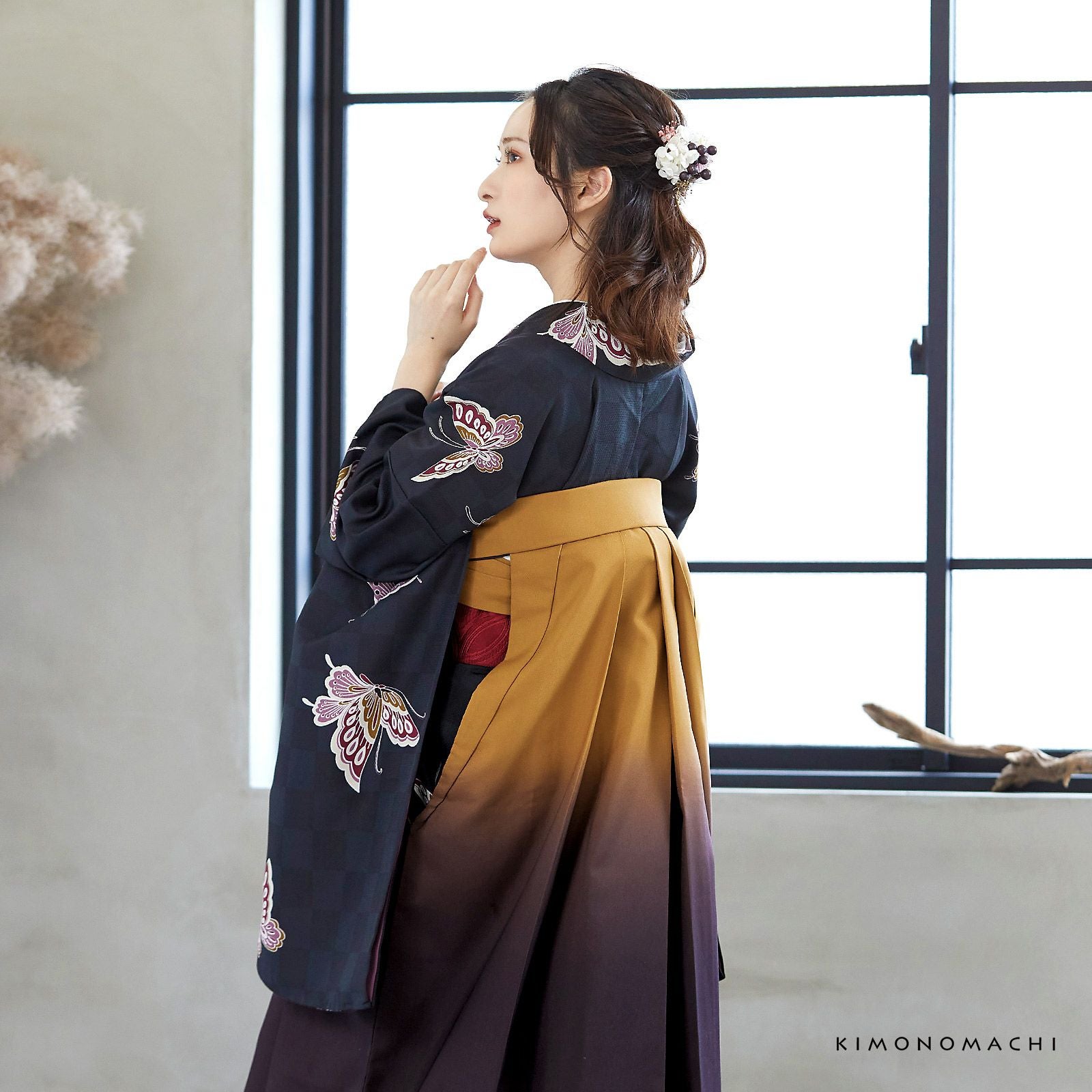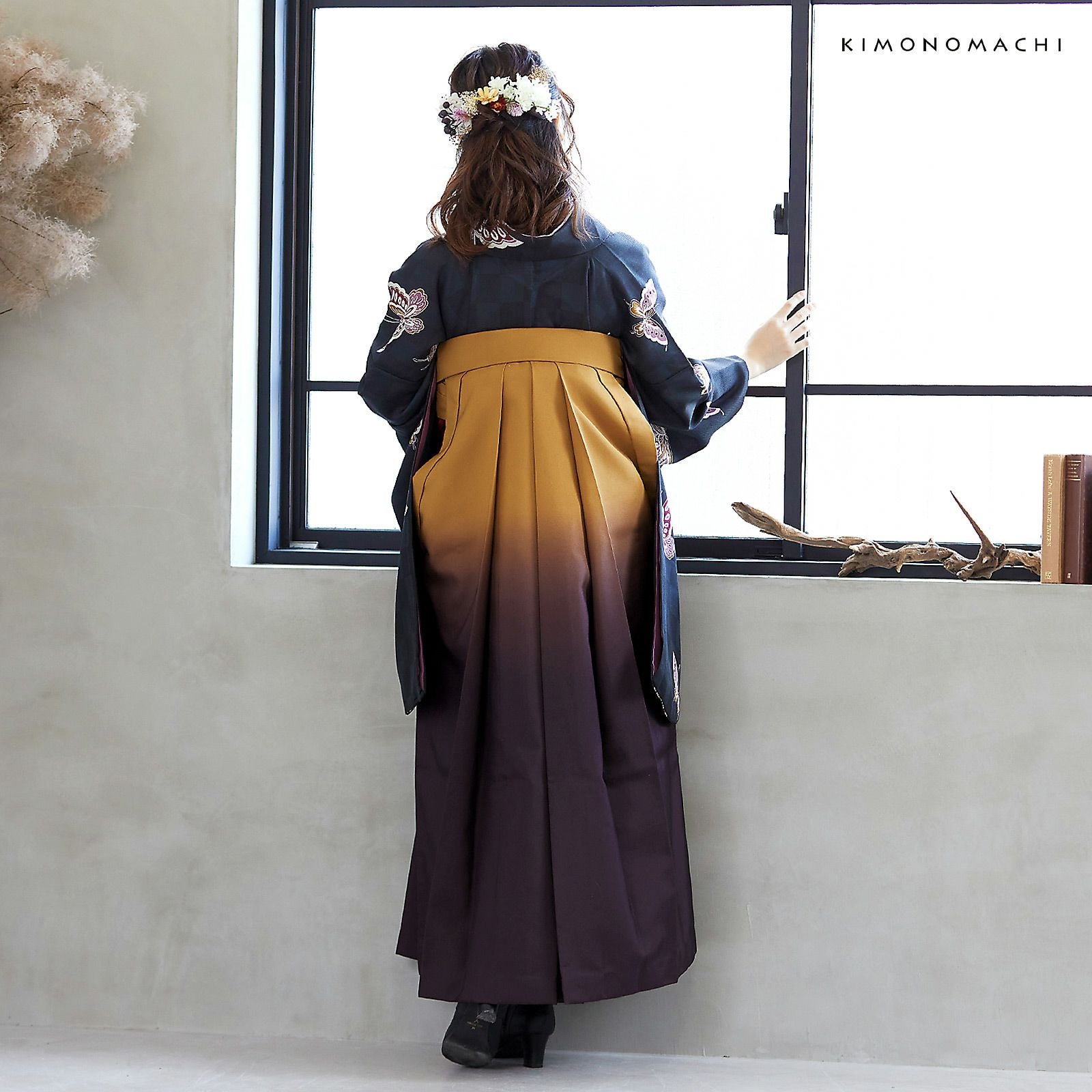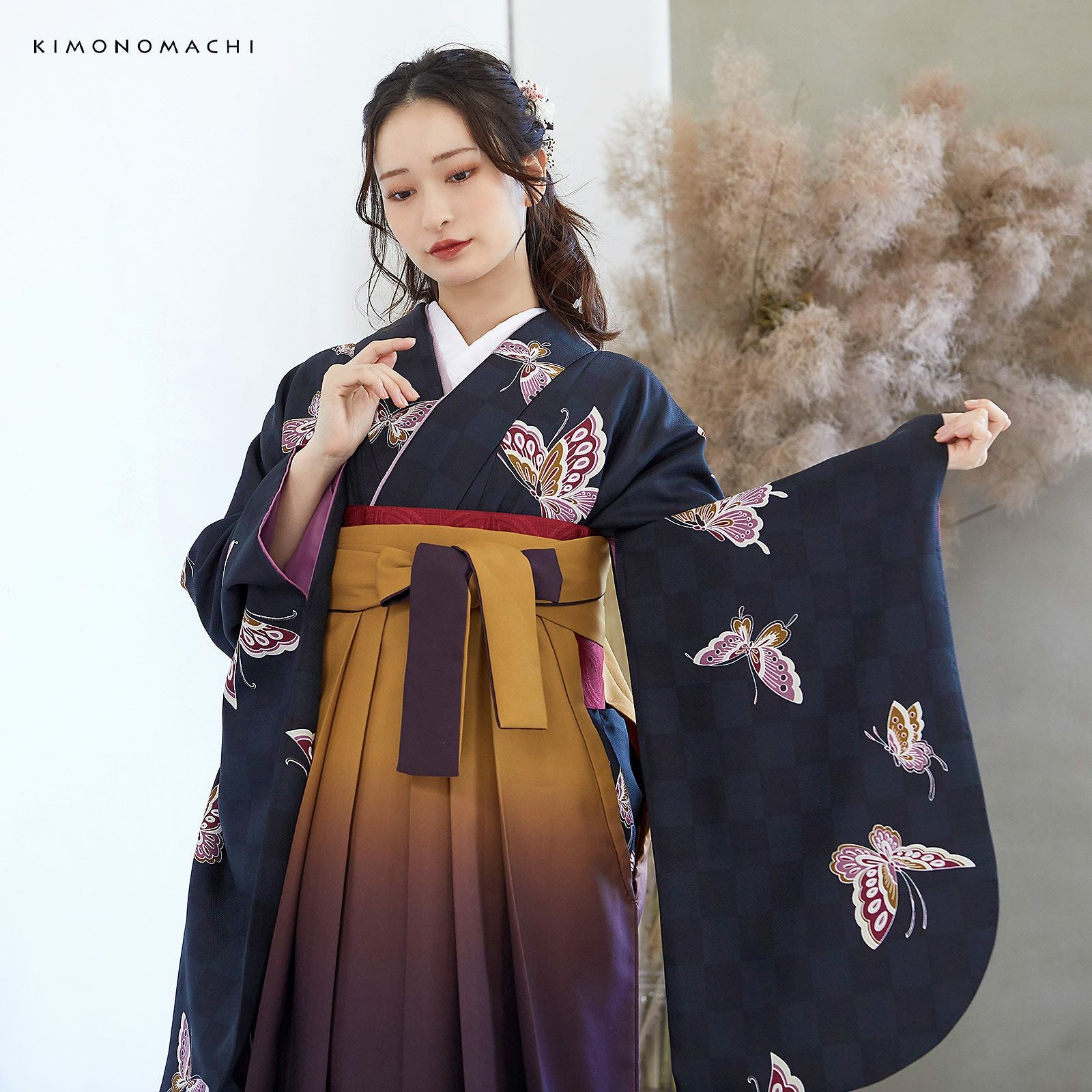 他の画像を見る 送料無料 卒業式に 二尺袖袴セット 卒業式 袴 レディース (卒業式応援75%SALE 3/5迄)袴 セット 卒業式 女性 4点セット「二尺袖:飛び蝶 黒市松+袴:金茶×滅紫 ぼかし+袴下帯:レッド 麻の葉+襦袢」卒業式 女性 レディース お仕立て上がり 袴セット 二尺袖着物セット 着物 二尺着物 袴【メール便不可】 通常販売価格 ¥ 38,500 のところ きもの町価格 ¥ 28,600 税込 販売期間 2026/02/19 18:00 〜 2026/03/05 17:59 カートに入れる お気に入りに登録する