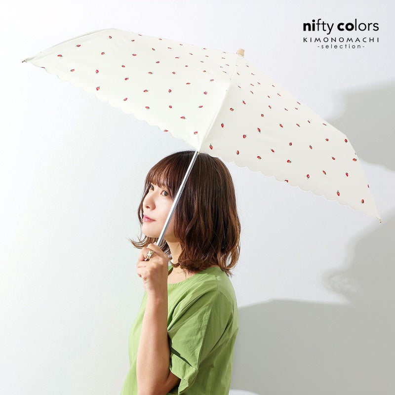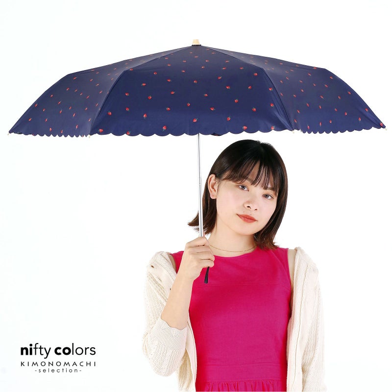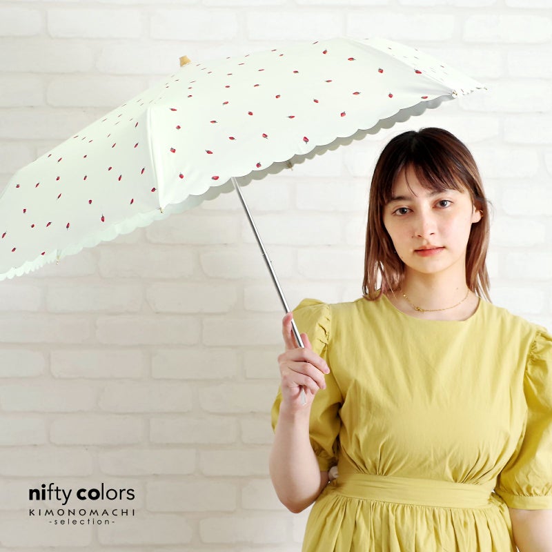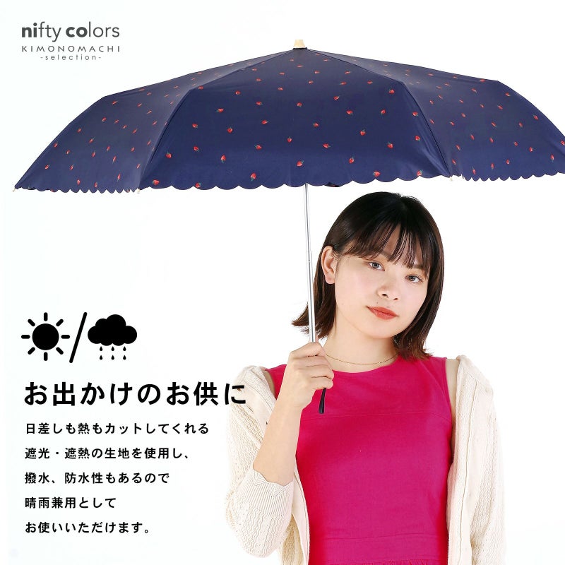 日傘 晴雨兼用「nifty colors 遮光いちごミニ 2382」遮光 遮熱 撥水 はっ水 防水 UVカット PU加工 折りたたみ 折傘 女性用 レディース women's プレゼント ギフト 母の日【メール便不可】ss2506wkm10