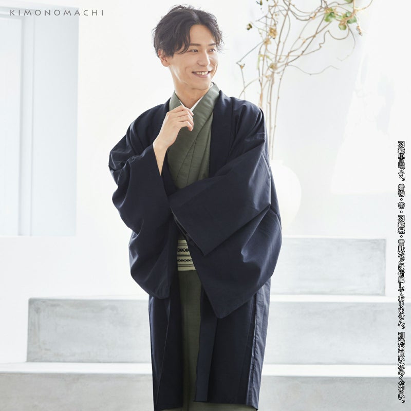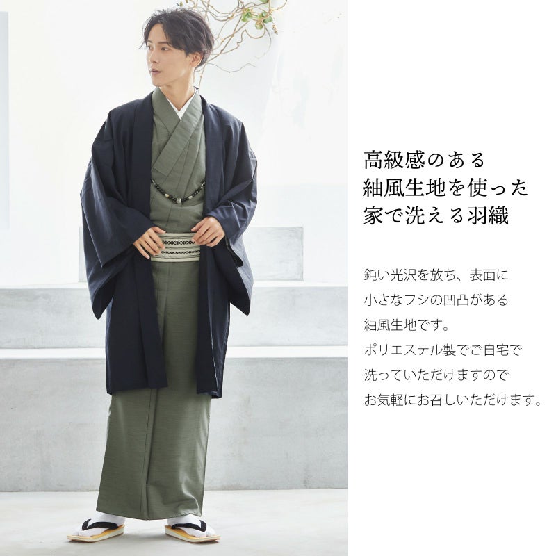 羽織 男性 メンズ 洗える着物 単品 「ネイビー 紬風」 はおり 男着物 男性用着物 男性着物 メンズ着物 お仕立て上がり ポリエステル着物 男羽織 プレタ着物 男着物単品 mens kimono haori 【メール便不可】