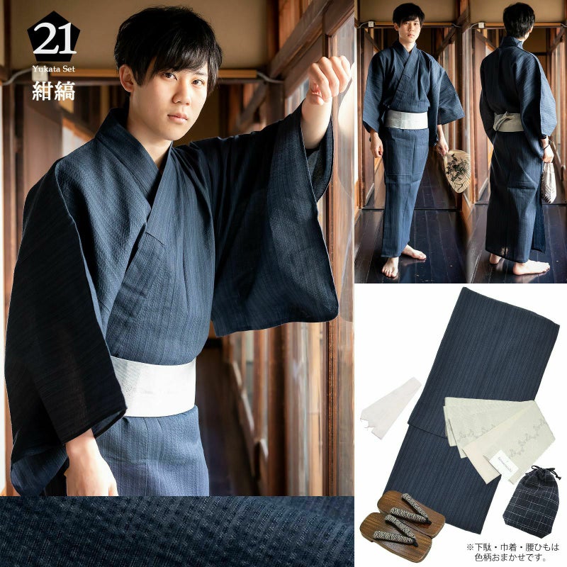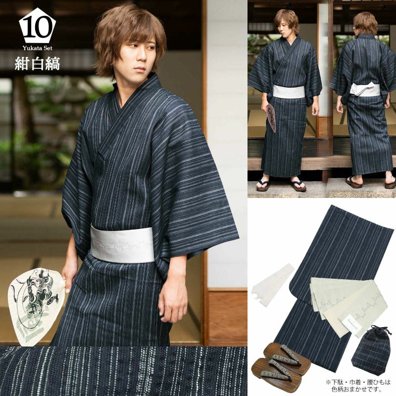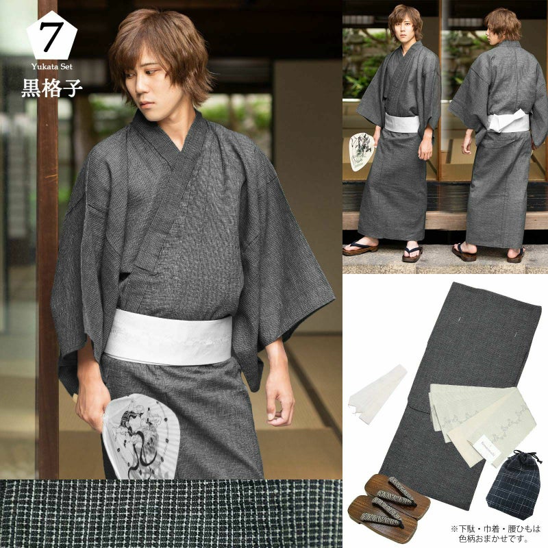 夏祭りや花火大会、プレゼントに! 男性浴衣の5点セットです。