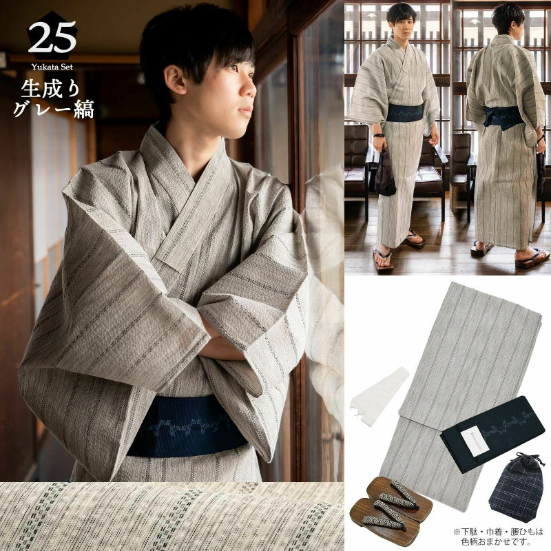 No.25「生成りグレー縞」+角帯「紺色 束ね熨斗」