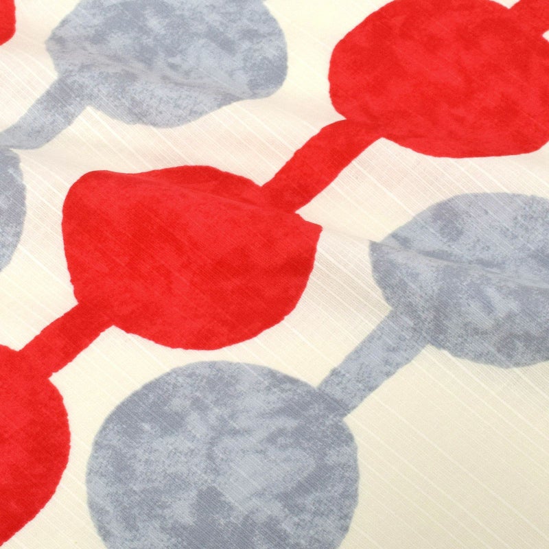 D.つなぎだんご アカ・・・アイボリーの地に濃淡のある赤とグレーのつなぎだんごの模様。祇園のお茶屋の提灯の紋章を風呂敷にデザインした柄です。