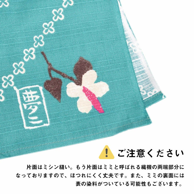 【ご注意ください】片面はミシン縫い。もう片面はミミと呼ばれる織機の両端部分になっておりますので、ほつれにくく丈夫です。また、ミミの裏面には表の占領がついている可能性もございます。