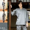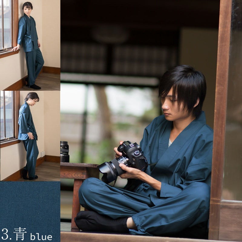 綿ポリ素材の作務衣です。上着、ズボンの上下に分かれています。