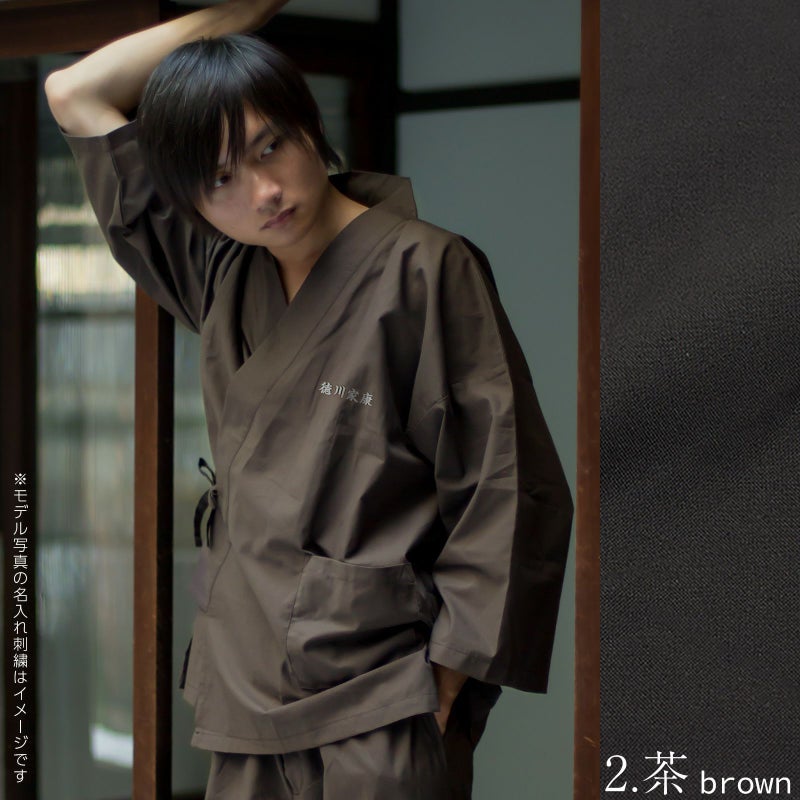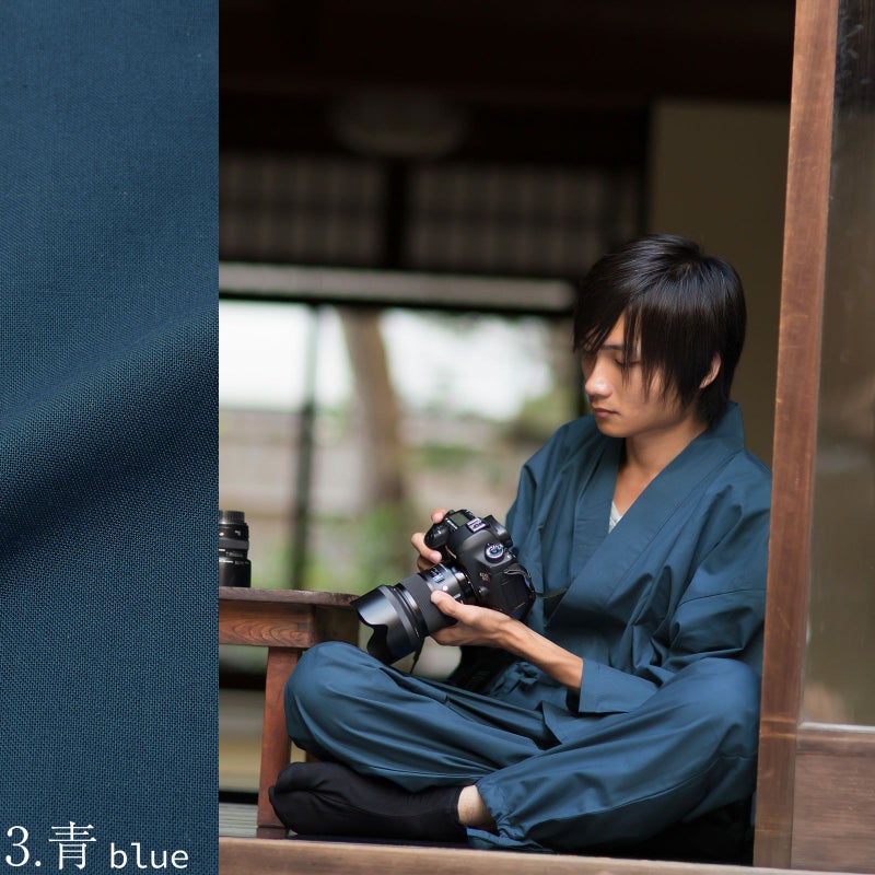 綿ポリ素材の作務衣です。上着、ズボンの上下に分かれています。