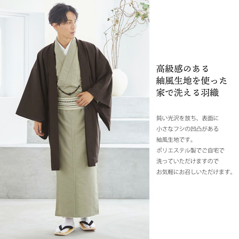 羽織 男性 メンズ 洗える着物 単品 「ダークブラウン 紬風」 はおり 男着物 男性用着物 男性着物 メンズ着物 お仕立て上がり ポリエステル着物 男羽織 プレタ着物 男着物単品 mens kimono haori 【メール便不可】