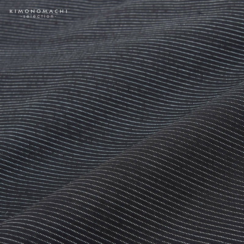 表は墨黒の地に細い白の縞。裏は黒地に灰みの紫色の大き目の鮫小紋。鮫小紋の中には、なんと小さな鮫が表現されています。ちらりと見える裏面にこだわりのお洒落が隠された浴衣です。