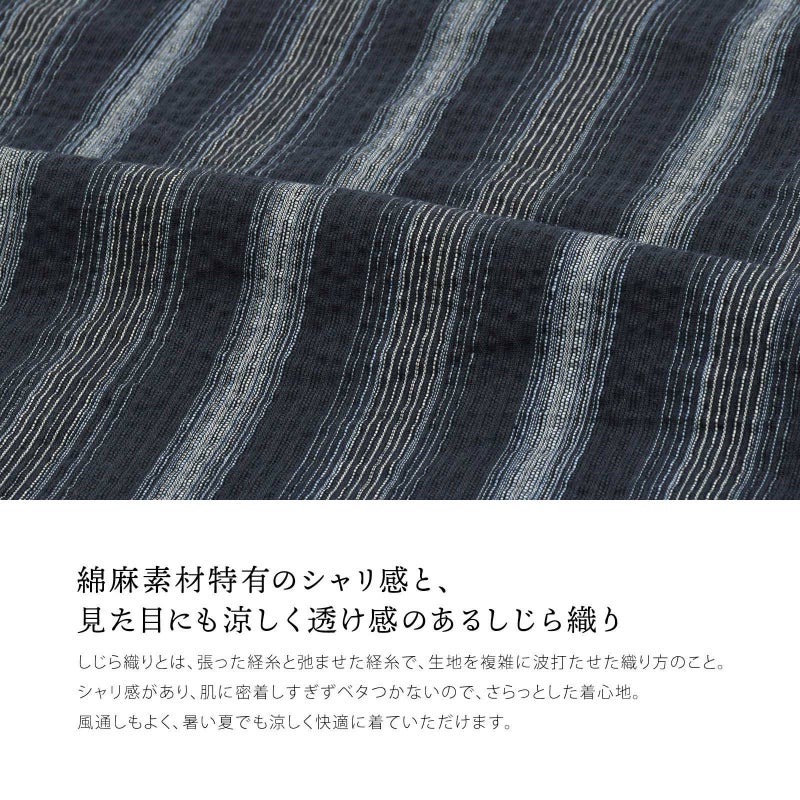 綿麻素材特有のシャリ感と、見た目にも涼しく透け感があるしじら織りは、暑い夏を涼しく感じさせてくれます。