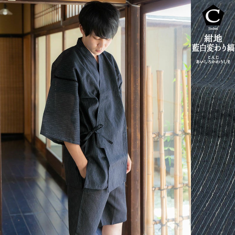 C紺地、藍白変わり縞…濃紺地に藍色の細縞、白、墨色の細かな乱れ縞。