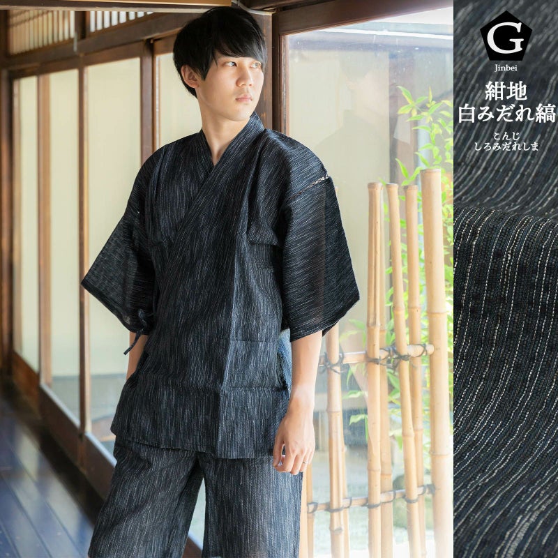G紺地、白みだれ縞…濃紺地に白、墨色の細かな乱れ縞。