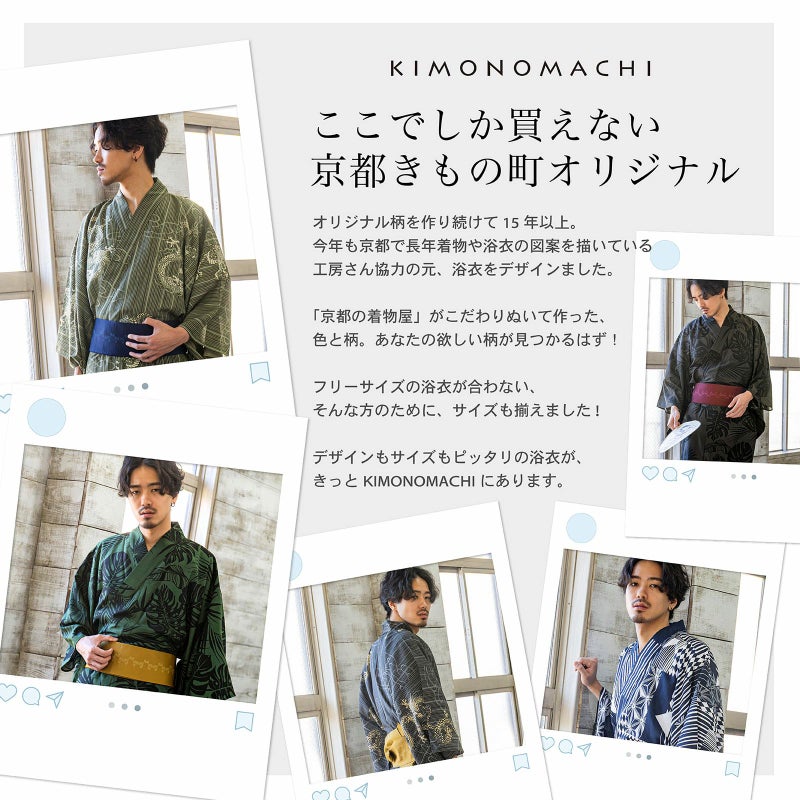 KIMONOMACHIオリジナル!吸水速乾、高機能ポリエステル浴衣、男性浴衣単品です。