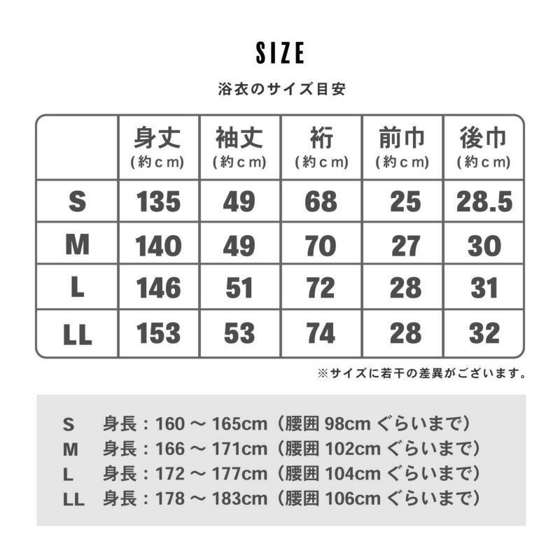 【適応身長の目安(浴衣)】