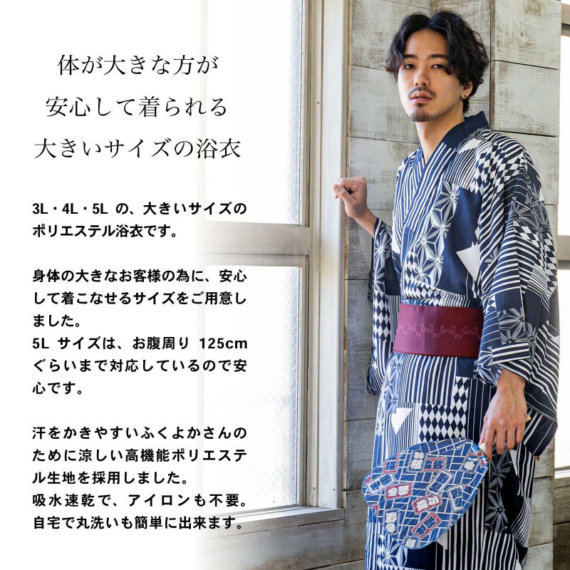 KIMONOMACHIオリジナル!吸水速乾、高機能ポリエステル浴衣、男性浴衣単品です。