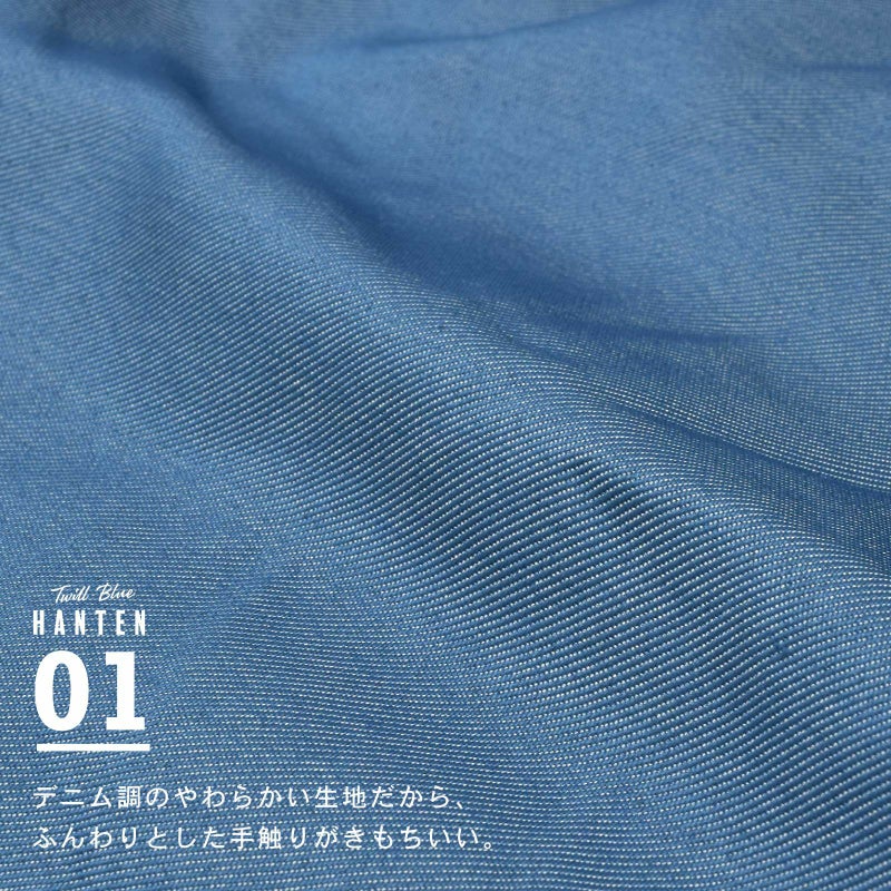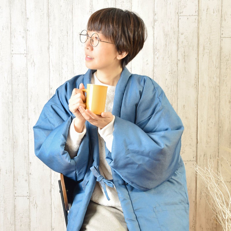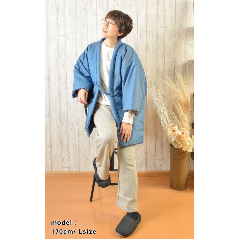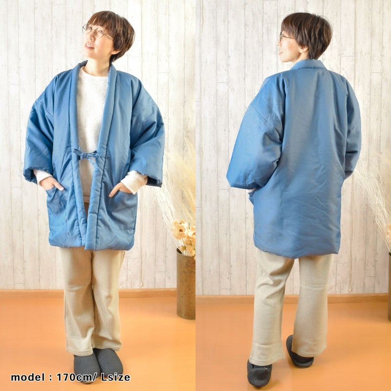 柔らかいデニム調のツイル生地を使用したふわふわあったか半纏です。