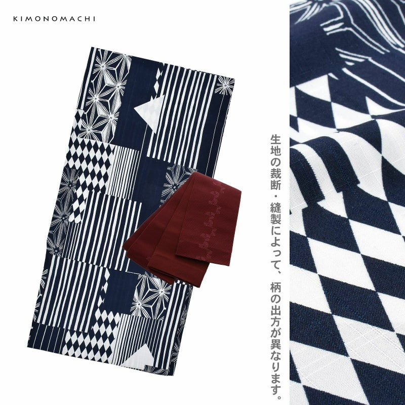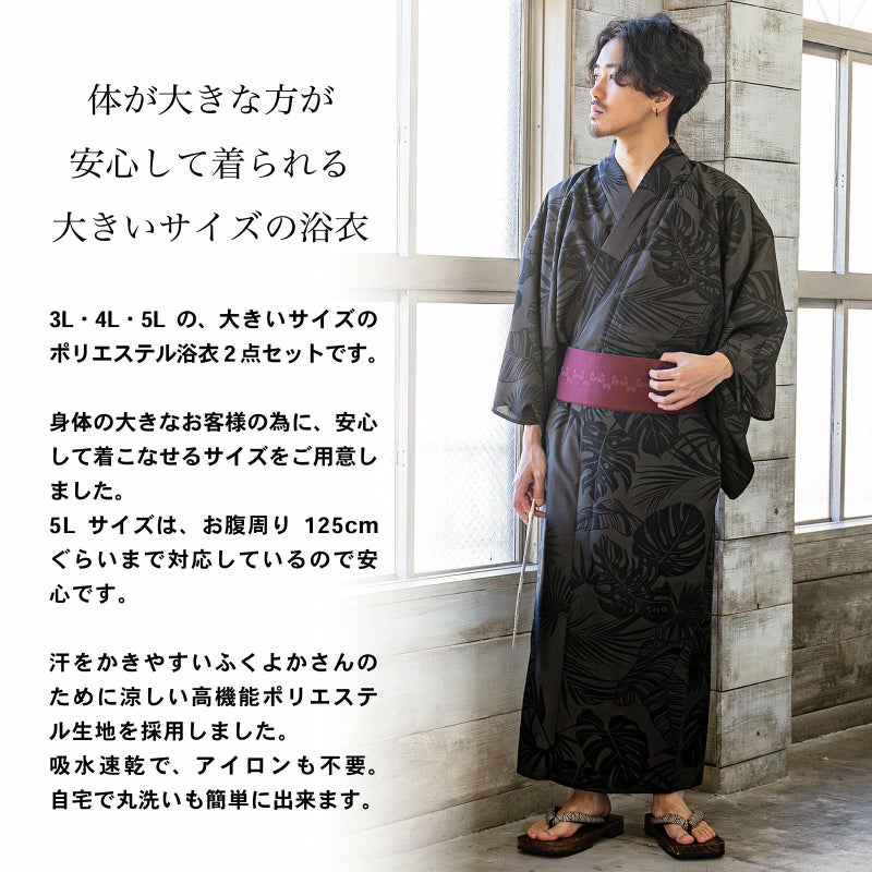 KIMONOMACHIオリジナル!吸水速乾、高機能ポリエステル浴衣、男性浴衣と角帯のセットです。