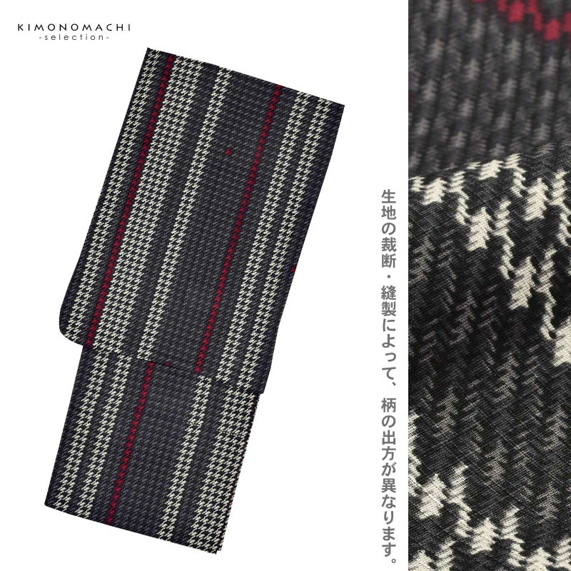 黒にチャコールグレーとグレーの千鳥格子(ハウンドトゥース)の地。部分的に千鳥の色を変え、赤と白の縞が表現されています。