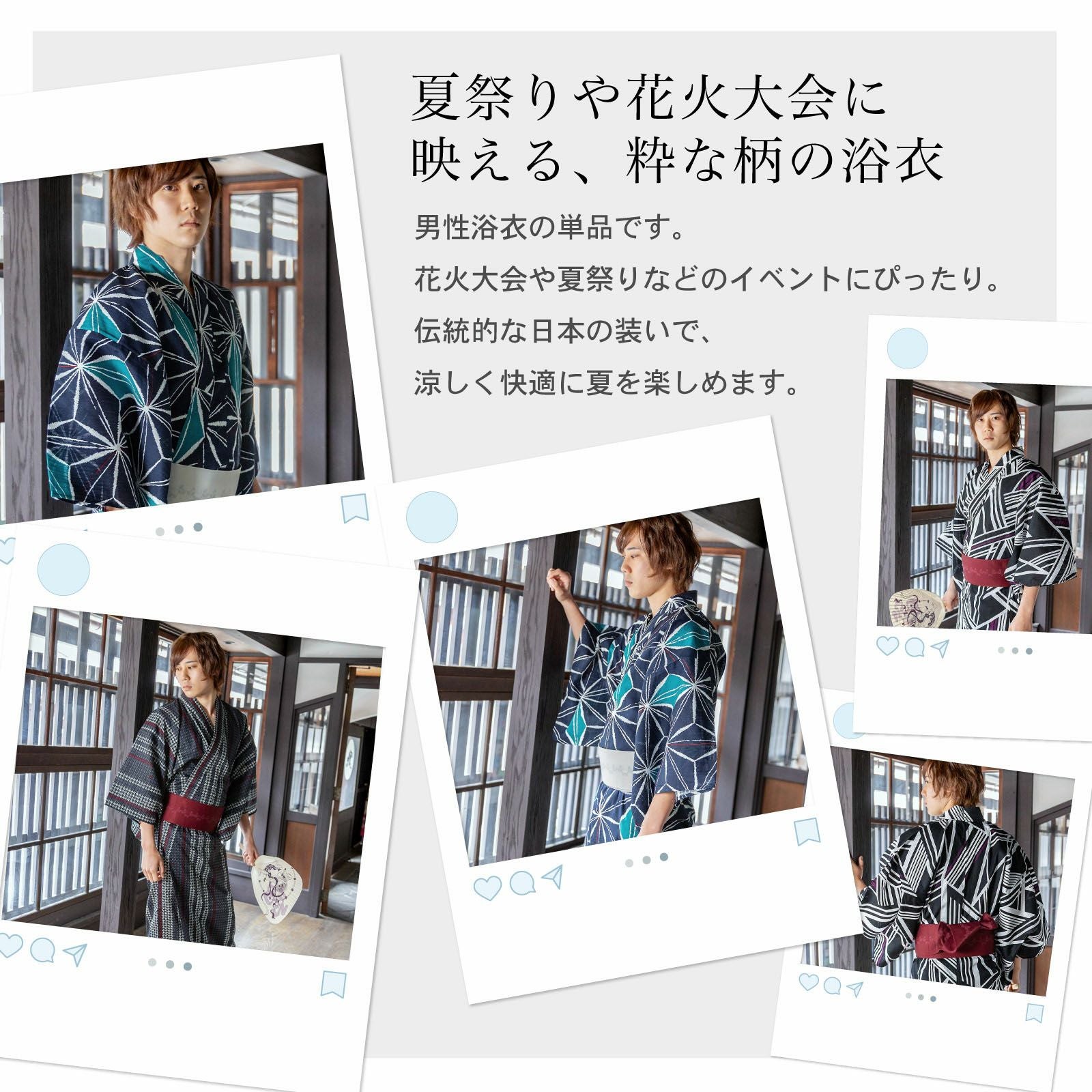 他の画像を見る 送料無料 涼しくて着心地が良いポリエステル素材の男性浴衣 KIMONOMACHI オリジナル 男性 メンズ浴衣単品 吸水速乾 吸汗速乾 ポリエステル浴衣「細縞に雲龍・幾何学寄せ柄・トロピカルリーフ」S M L LL 男性浴衣 男性用浴衣 ゆかた yukata【メール便不可】ss2512men10 きもの町価格 ¥ 12,100 税込 カートに入れる お気に入りに登録する