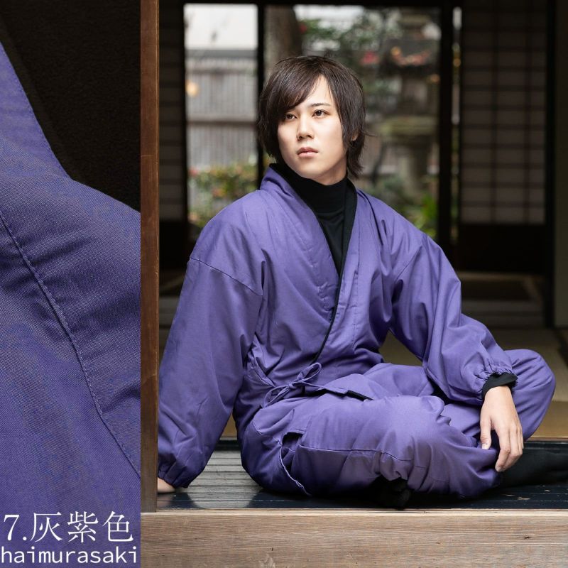 作業着や部屋着として、またちょっとした外出に、寒い季節を快適に過ごせる冬用作務衣です。まだ肌寒い春先にも。