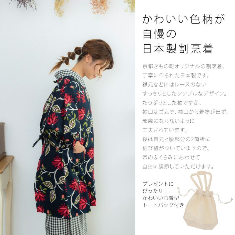 かわいい色柄が自慢の日本製割烹着に、トートバッグがついたギフトセット