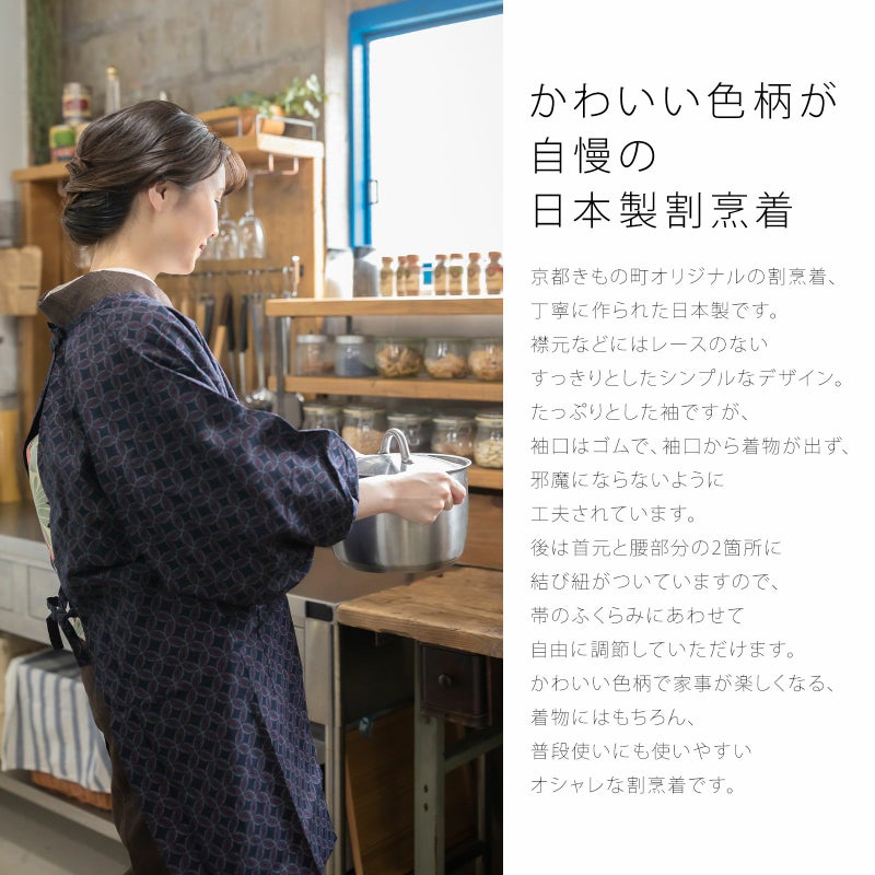 京都きもの町オリジナルの割烹着、丁寧に作られた日本製です。