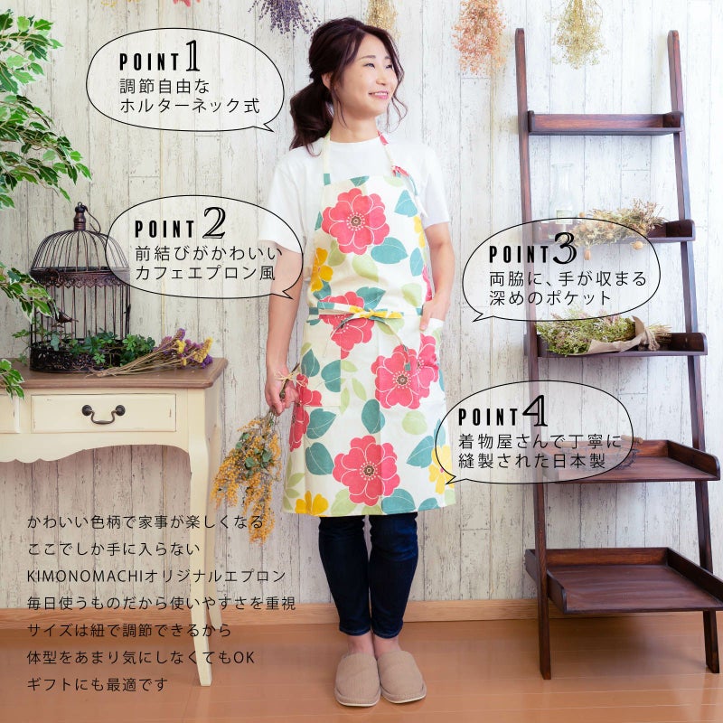 丁寧に作られた日本製の「京都きもの町」オリジナルのエプロンです。