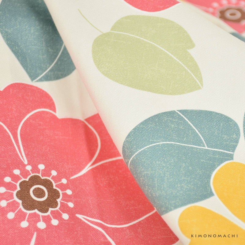 わずかに黄みを含んだ柔らかな白色地に赤、黄色のお花模様。