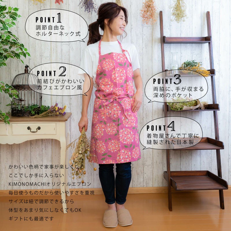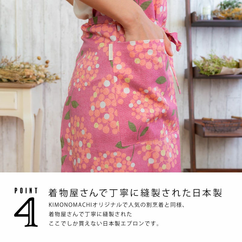 丁寧に作られた日本製の「京都きもの町」オリジナルのエプロンです。