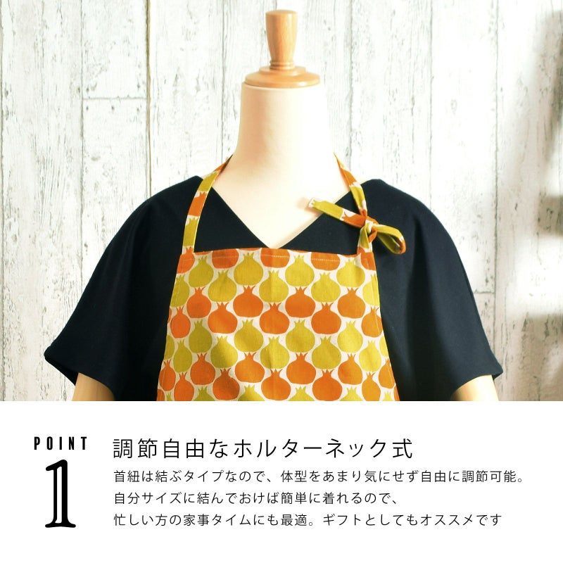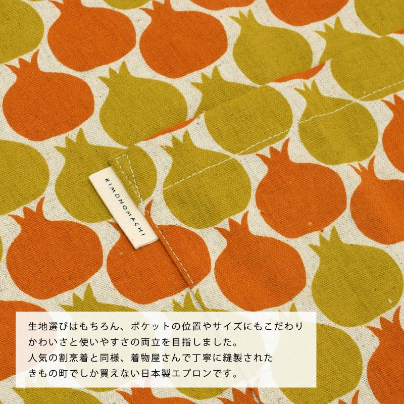 エプロン「からし色 ザクロ、タブンタマネギ」 実用的 日本製 オシャレ かわいい KIMONOMACHI オリジナル カフェエプロン 母の日 敬老の日 誕生日 プレゼント、ギフト、贈り物に最適 【送料無料】