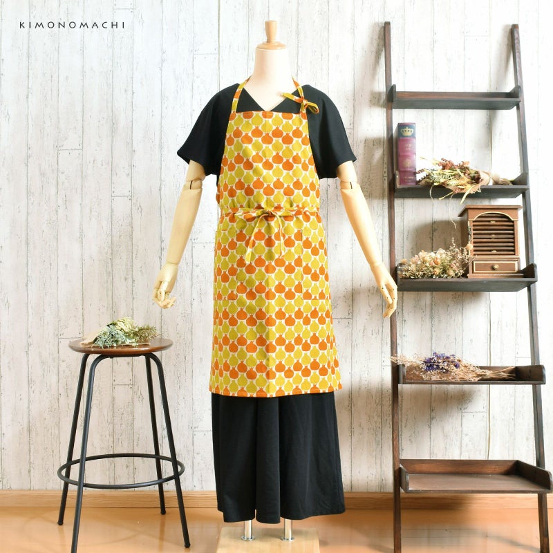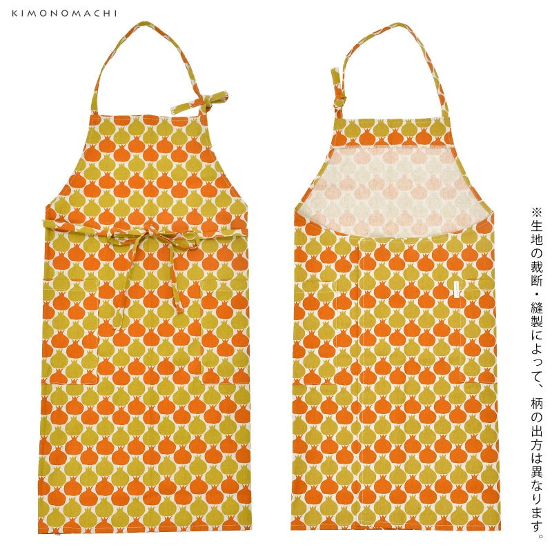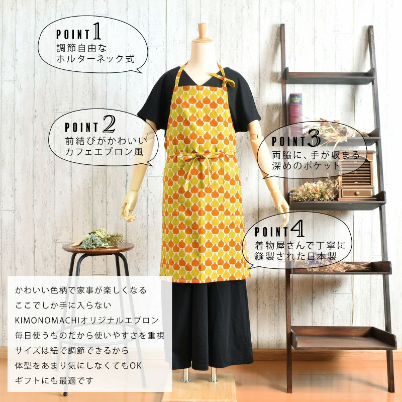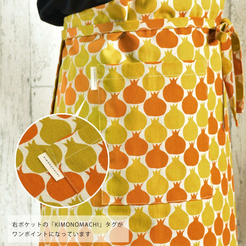 3. エプロン「からし色 ザクロ、タブンタマネギ」 実用的 日本製 オシャレ かわいい KIMONOMACHI オリジナル カフェエプロン 母の日 敬老の日 誕生日 プレゼント、ギフト、贈り物に最適<H> 【送料無料】【メール便対応可】wm★10%OFF