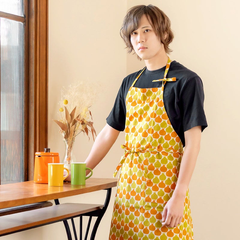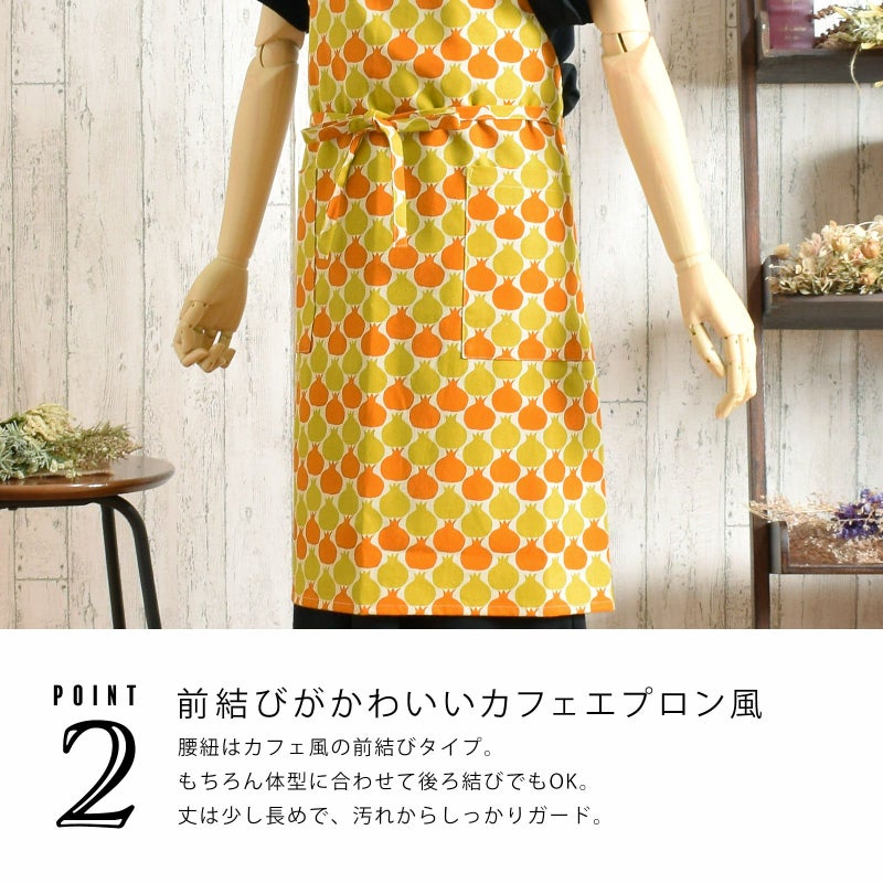 母の日や敬老の日のギフトにも!オシャレかわいいオリジナルエプロン エプロン「からし色 ザクロ、タブンタマネギ」 実用的 日本製 オシャレ かわいい KIMONOMACHI オリジナル カフェエプロン 母の日 敬老の日 誕生日 プレゼント、ギフト、贈り物に最適<H> 【送料無料】【メール便対応可】wm★10%OFF