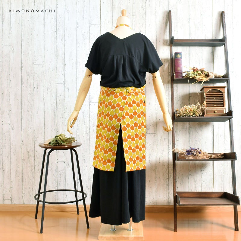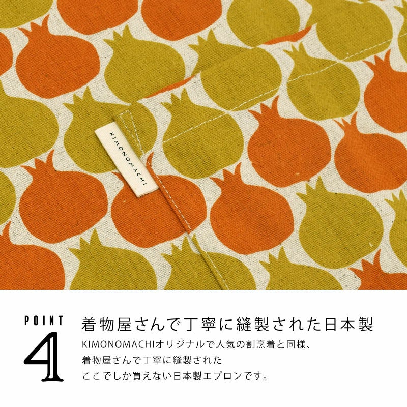 4. エプロン「からし色 ザクロ、タブンタマネギ」 実用的 日本製 オシャレ かわいい KIMONOMACHI オリジナル カフェエプロン 母の日 敬老の日 誕生日 プレゼント、ギフト、贈り物に最適<H> 【送料無料】【メール便対応可】wm★10%OFF