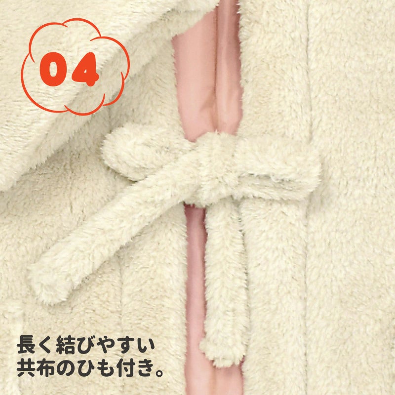 A.アイボリー:表と紐はややグレイッシュなアイボリーのフリース素材。裏地はピンク。