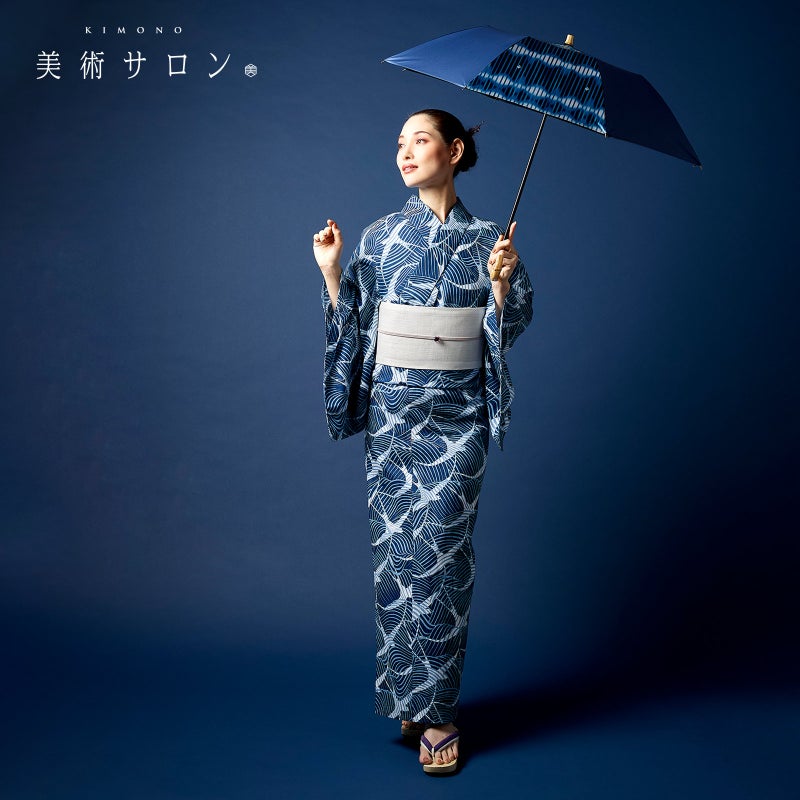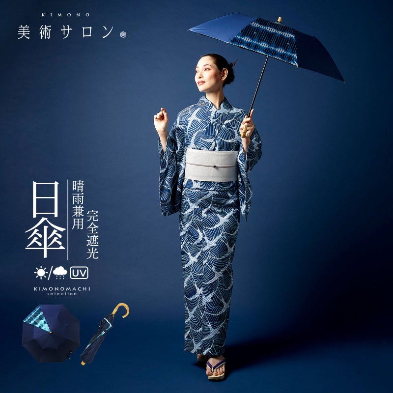 着物にも洋服にも自然に馴染む、美術サロンオリジナルデザインの折りたたみ日傘です。