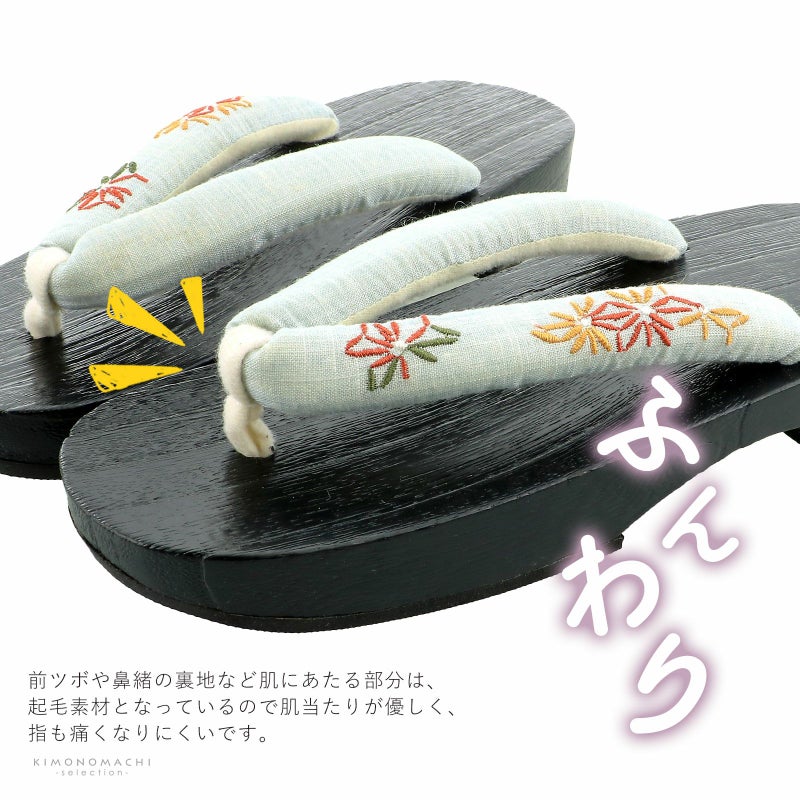 履きやすい女性下駄です。台は桐で汚れにくく、鼻緒は裏地がふわふわですので、擦れて痛くなりにくい下駄です。浴衣に合わせて、オシャレな下駄を合わせてみてはいかがでしょうか。