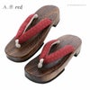 A.麻の葉 赤:鼻緒は赤の地に麻の葉模様、鼻をの裏は白。前坪は白。台は焼桐の焦げ茶色。