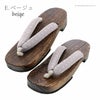 E.麻の葉 ベージュ:鼻緒はベージュの地に麻の葉模様、鼻をの裏は白。前坪は白。台は焼桐の焦げ茶色。