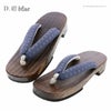 D.麻の葉 紺:鼻緒は紺色の地に麻の葉模様、鼻をの裏は白。前坪は白。台は焼桐の焦げ茶色。