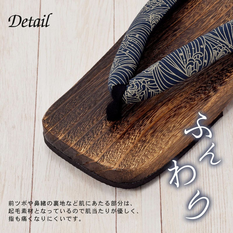 【カラー】鼻緒の色柄はおまかせです。台部分は焼き桐の台です。